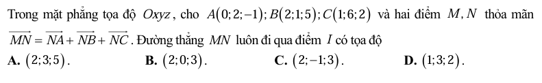 T12_C2B2_TỌA ĐỘ CỦA VECTO TRONG KHÔNG GIAN_BS1 Bởi Quản Trị ViênTrên 22 Tháng 8, 2024Trong T12_CHƯƠNG 2Viết bình luận của bạn tại T12_C2B2_TỌA ĐỘ CỦA VECTO TRONG KHÔNG GIAN_BS1 Chào mừng bạn đến với T12_C2B2_TỌA ĐỘ CỦA VECTO TRONG KHÔNG GIAN Name 1. A B C D None 2. A B C D None 3. A B C D None 4. A B C D None 5. A B C D None 6. A B C D None 7. A B C D None 8. A B C D None 9. A B C D None 10. A B C D None 11. A B C D None 12. A B C D None 13. A B C D None 14. A B C D None 15. A B C D None 16. A B C D None 17. A B C D None 18. A B C D None 19. A B C D None 20. A B C D None 21. A B C D None 22. A B C D None 23. A B C D None 24. A B C D None 25. A B C D None 26. A B C D None 27. A B C D None 28. A B C D None 29. A B C D None 30. A B C D None 31. Trắc nghiệm nhiều đáp án đúng A B C D 32. Trắc nghiệm nhiều đáp án đúng A B C D 33. Trắc nghiệm nhiều đáp án đúng A B C D 34. Trắc nghiệm nhiều đáp án đúng A B C D 35. Trắc nghiệm nhiều đáp án đúng A B C D Time's up